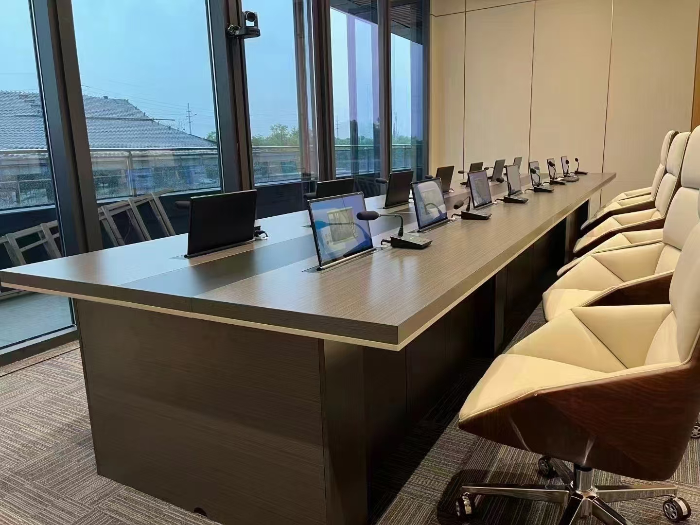 新款馬里胡桃會(huì)議桌,結(jié)構(gòu)采用板式+鋁合金結(jié)合,莊重簡(jiǎn)約、沉穩(wěn)大氣適合多種會(huì)議室裝修風(fēng),顏色可定制